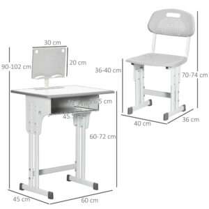 - REGLABIL: Înălțimea biroului și a scaunului poate fi ajustată, adaptându-se astfel creșterii copiilor cu vârste între 6 și 12 ani.