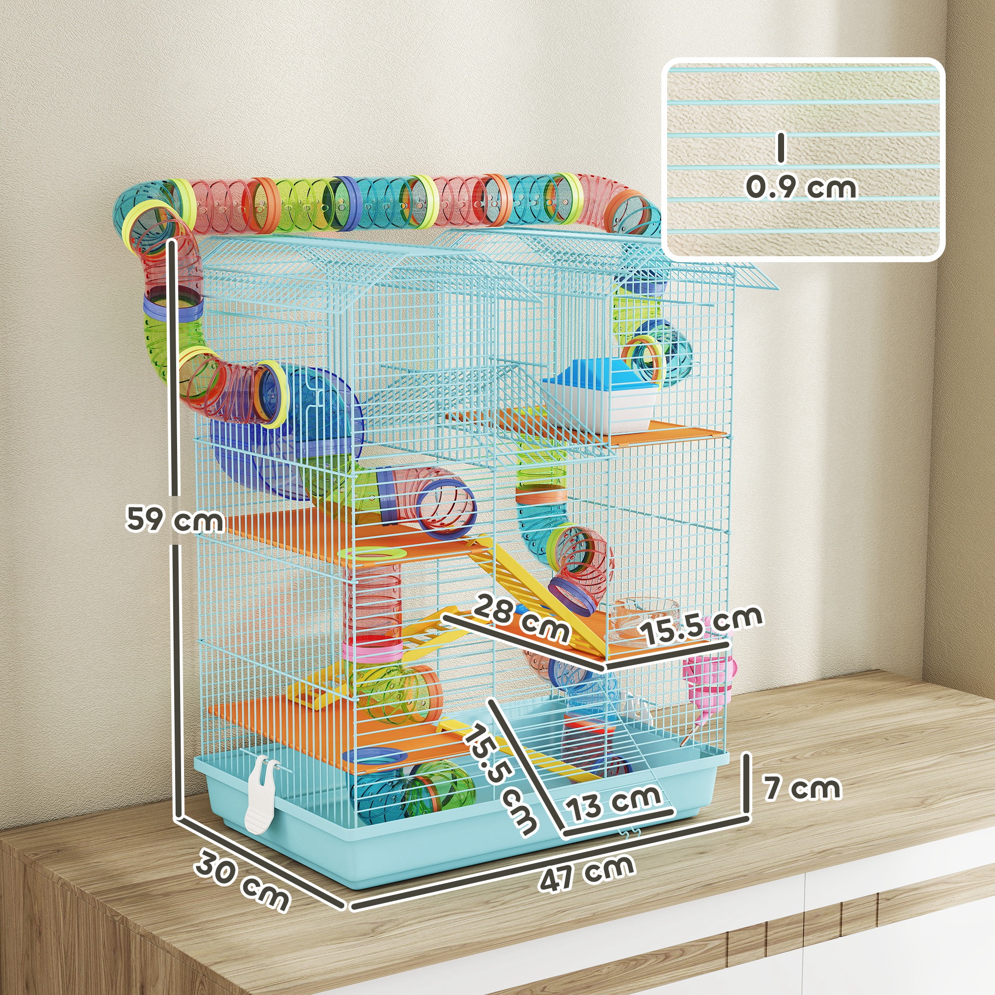 - SIGURANȚĂ PE PRIMUL LOC: Fabricată din materiale non-toxice, cușca are un finisaj atent realizat, fără spații periculoase pentru lăbuțele hamsterului tău.