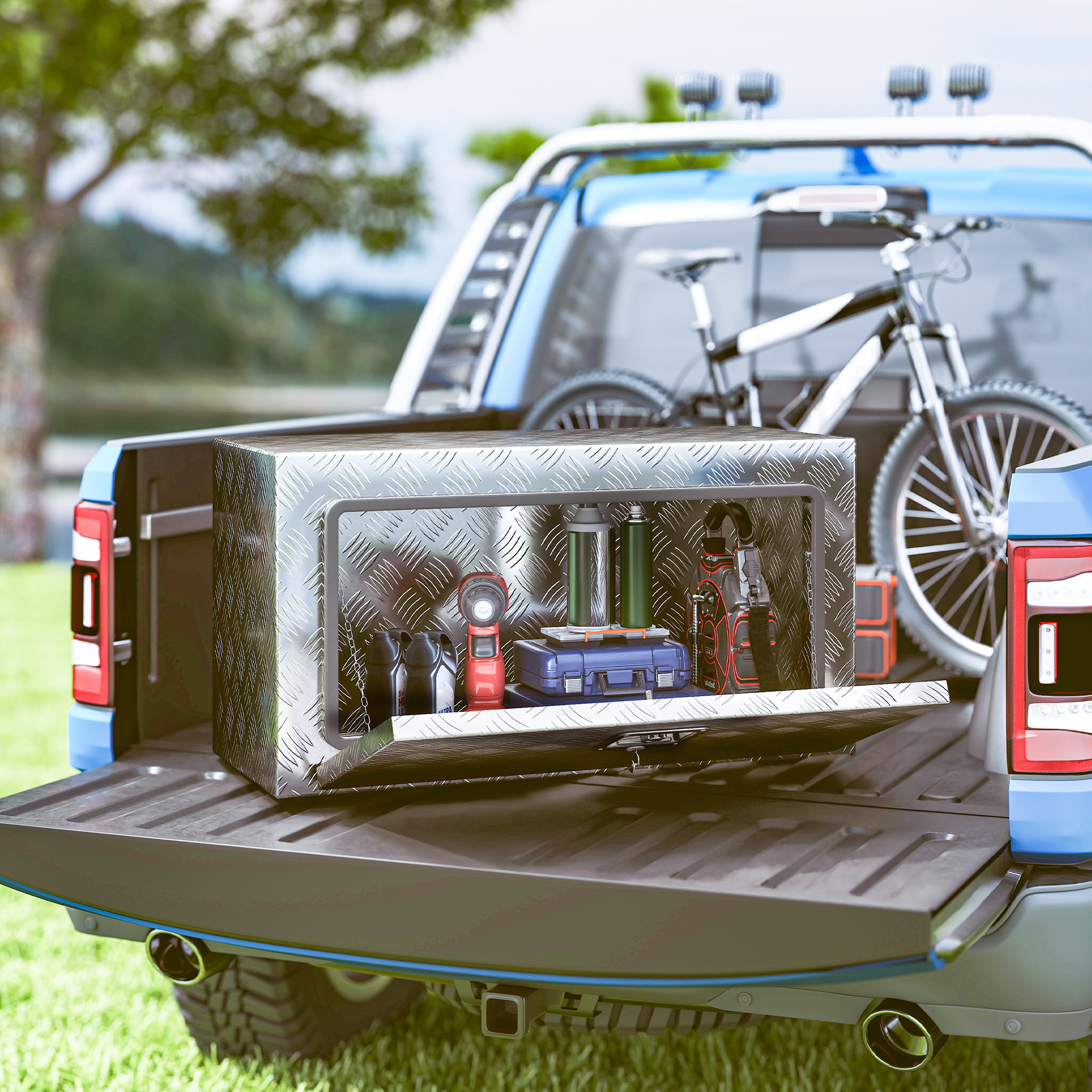 - VERSATILITATE: Această cutie de unelte din metal este perfectă pentru camioane, remorci sau garaje, oferind un sistem organizat pentru unelte, echipamente de camping sau provizii pentru grădină.