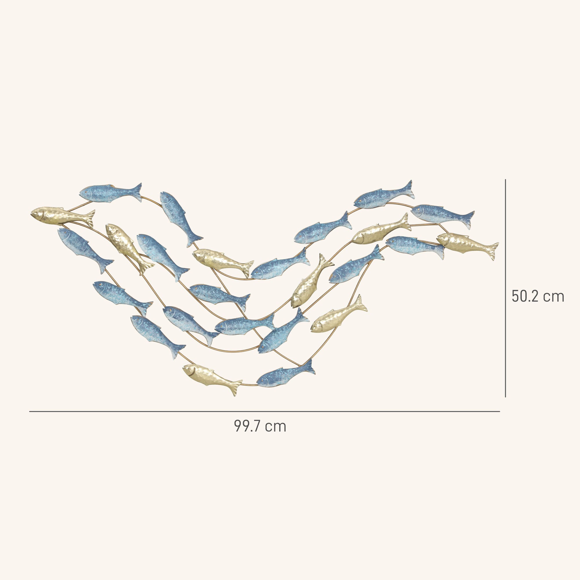 - Un Strop de Artă: Acest decor elegant cu pești în nuanțe de albastru și auriu creează un tablou marin atrăgător, perfect pentru livinguri și dormitoare.