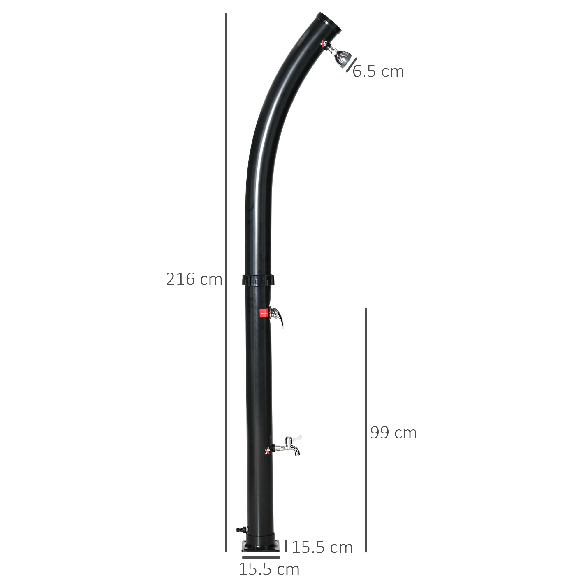 - DIMENSIUNI: Dimensiuni generale: 15,5L x 15,5l x 216lcm; Cap de duș: Ф6,5 x 6,5 Icm.