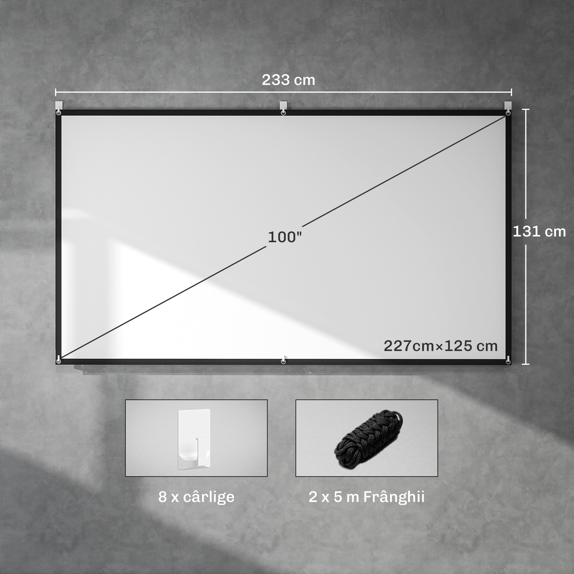 - EXPERIENȚE CINEMATOGRAFICE REMARCABILE: Cu un ecran de 100″ și un format 16:9, acest ecran oferă un unghi de vizionare de 160°, ideal pentru seri cu prietenii sau cinema în aer liber.