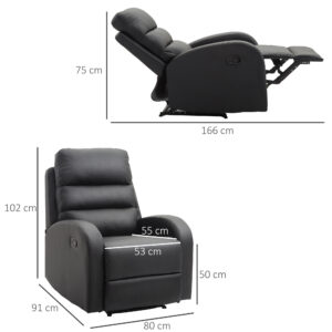 - Culoare: Negru – Material: Oțel, lemn MDF, piele ecologică, burete – Dimensiuni: 80 × 91 × 102 cm; Dimensiuni înclinată: 80 × 166 × 75 cm; Înălțimea scaunului: 50 cm