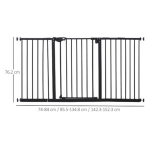 - Dimensiuni generale: 74-84L x 76,2H cm (lățime reglabilă cu șuruburi); Dimensiuni prelungiri: 17.5×76.2 cm, 20.3×76.2 cm, 30.5×76.2 cm; Lățimea intrării: 49 cm; Spațiu între bare: 5 cm; Greutate: 6 kg.