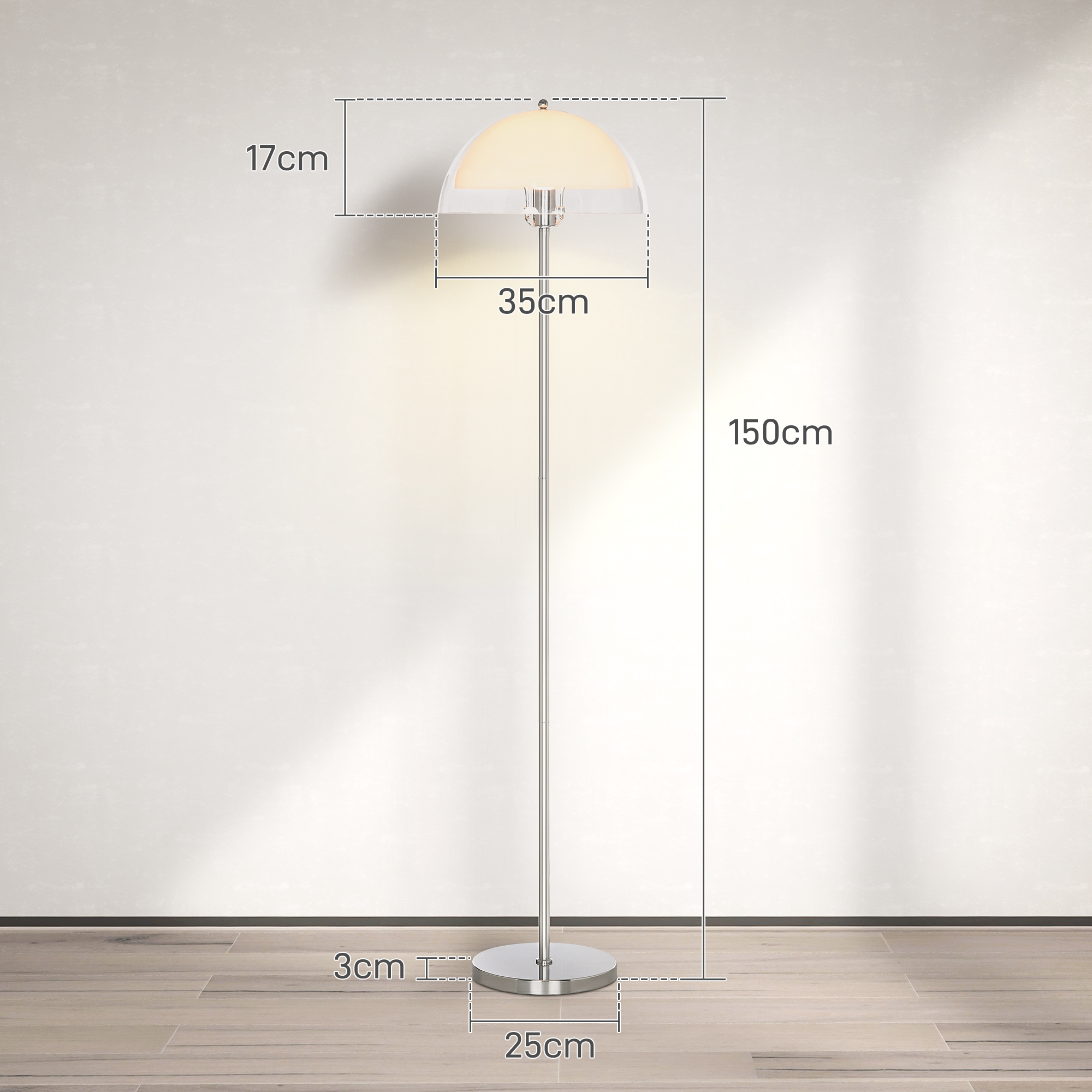 - DESIGN ELEGANT: Această lampă de podea dispune de un abajur dublu din acril, format dintr-un strat interior alb și unul exterior transparent, care oferă un iluminat rafinat, perfect pentru orice cameră din casa ta.