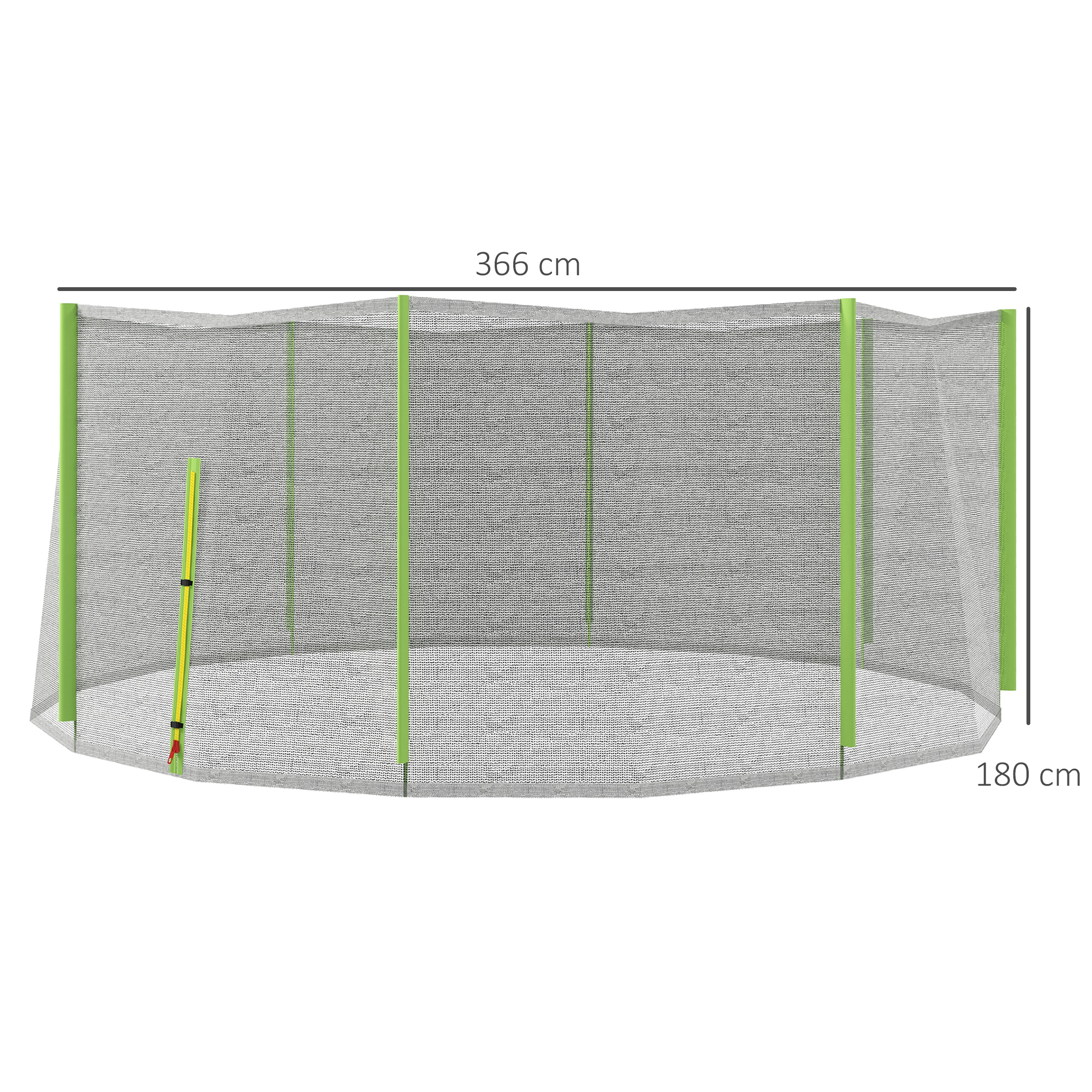 - Dimensiuni: Φ366 x 180H cm. Compatibilă cu trambulinele rotunde de 366 cm/12 ft cu 8 stâlpi drepți. (Stâlpii nu sunt incluși)