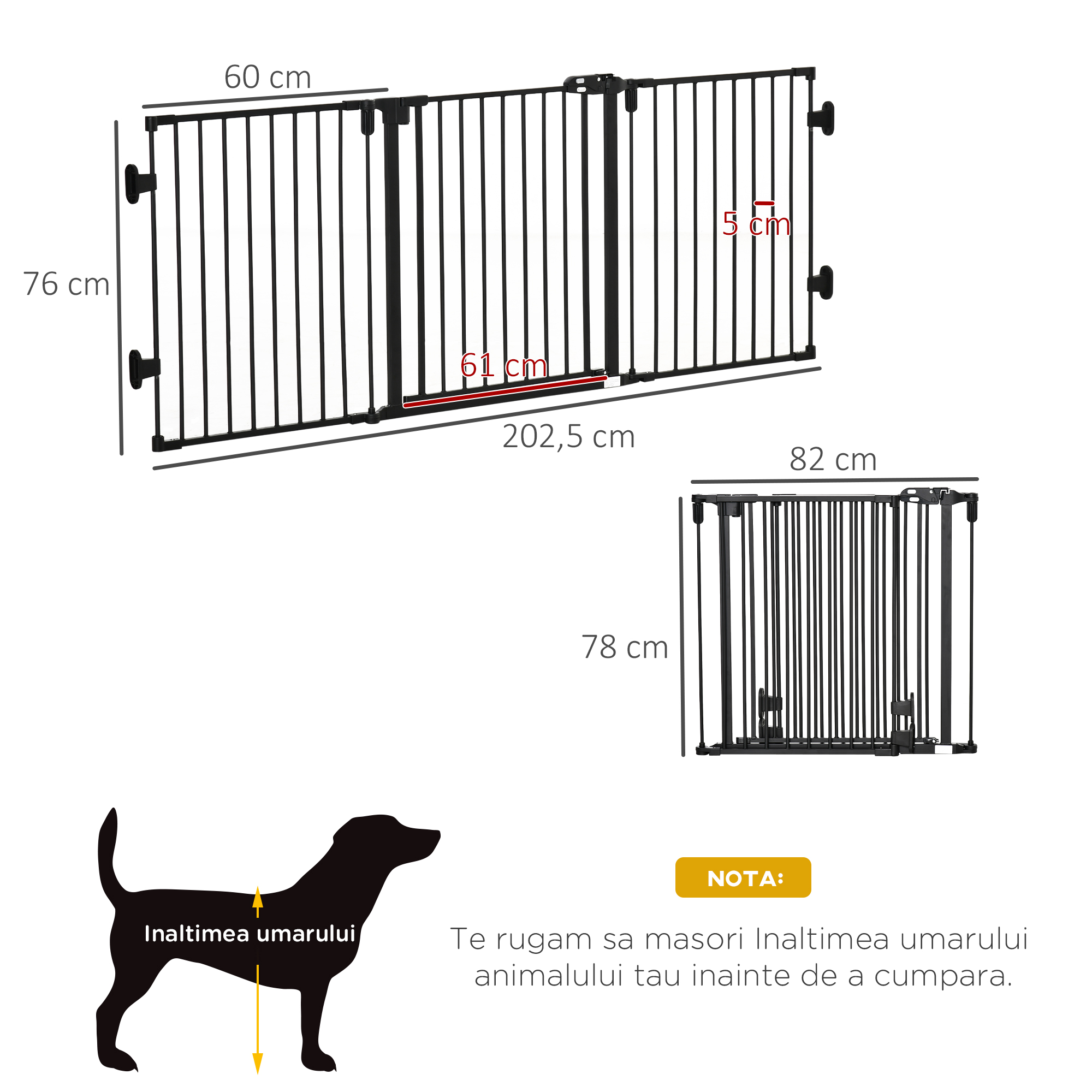 - PROTECȚIE EFICIENTĂ PENTRU ANIMALE: Această barieră pliabilă are un mecanism automat de închidere, asigurând siguranța animalelor și prevenind evadarea în zone nepermise.