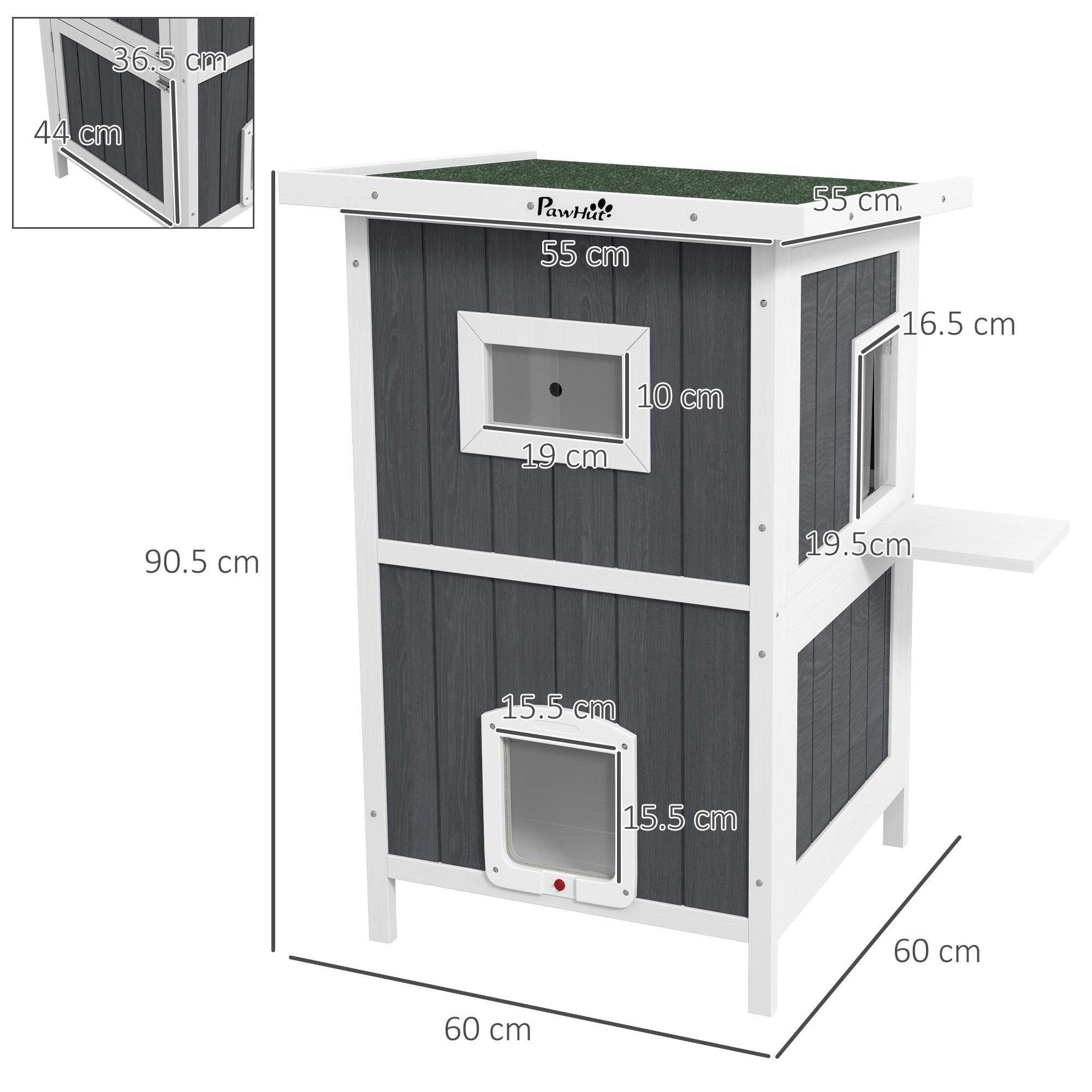 - REFUGIU CONFORTABIL: Această căsuță oferă un adăpost ideal pentru pisicile de exterior, având două niveluri care asigură un spațiu perfect pentru joacă și relaxare.