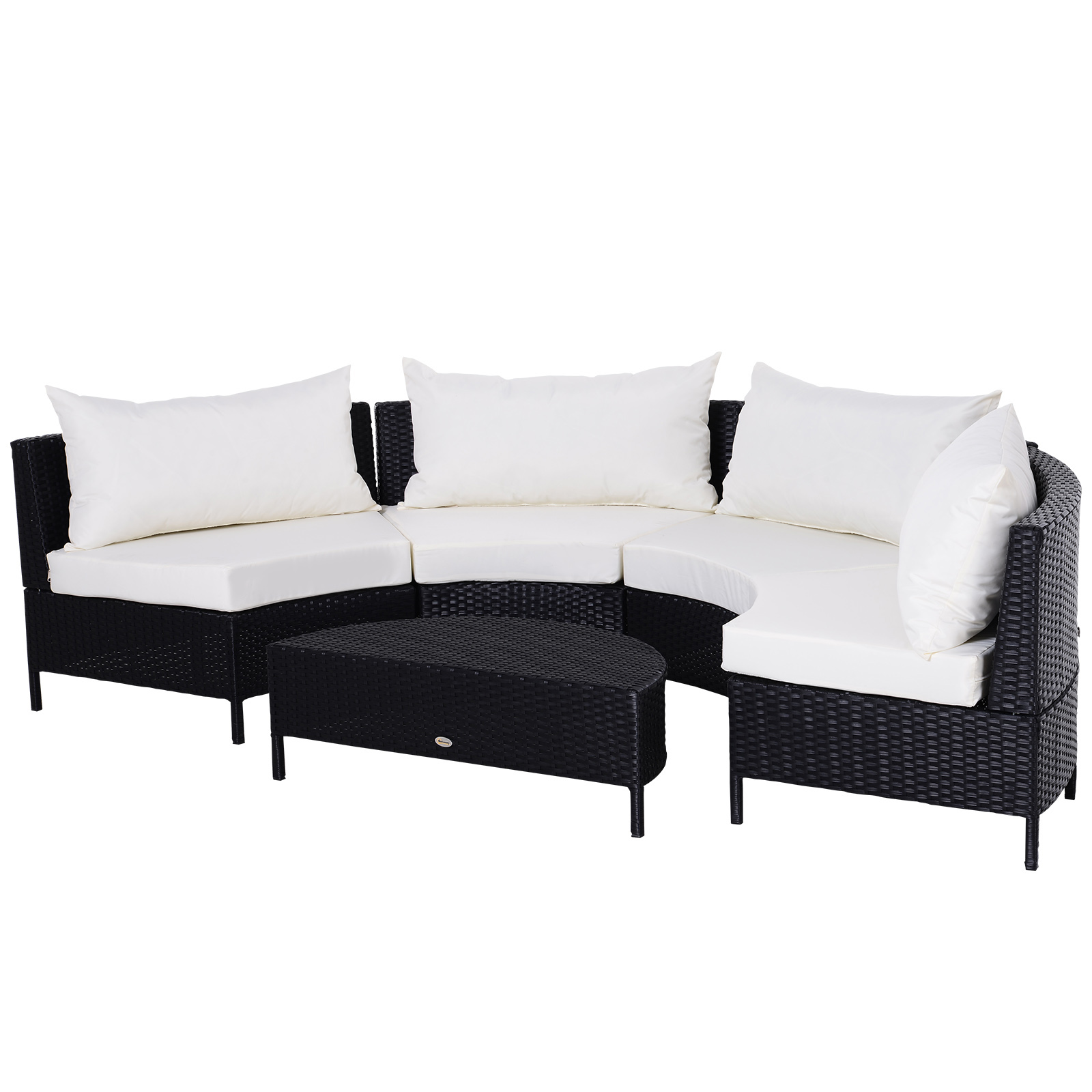 - Design Versatil: Acest set modern de 5 piese include 4 locuri fără cotiere și un puf semicircular, oferind flexibilitate în aranjarea spațiului tău exterior. Poți schimba oricând configurația pentru a se potrivi nevoilor tale.