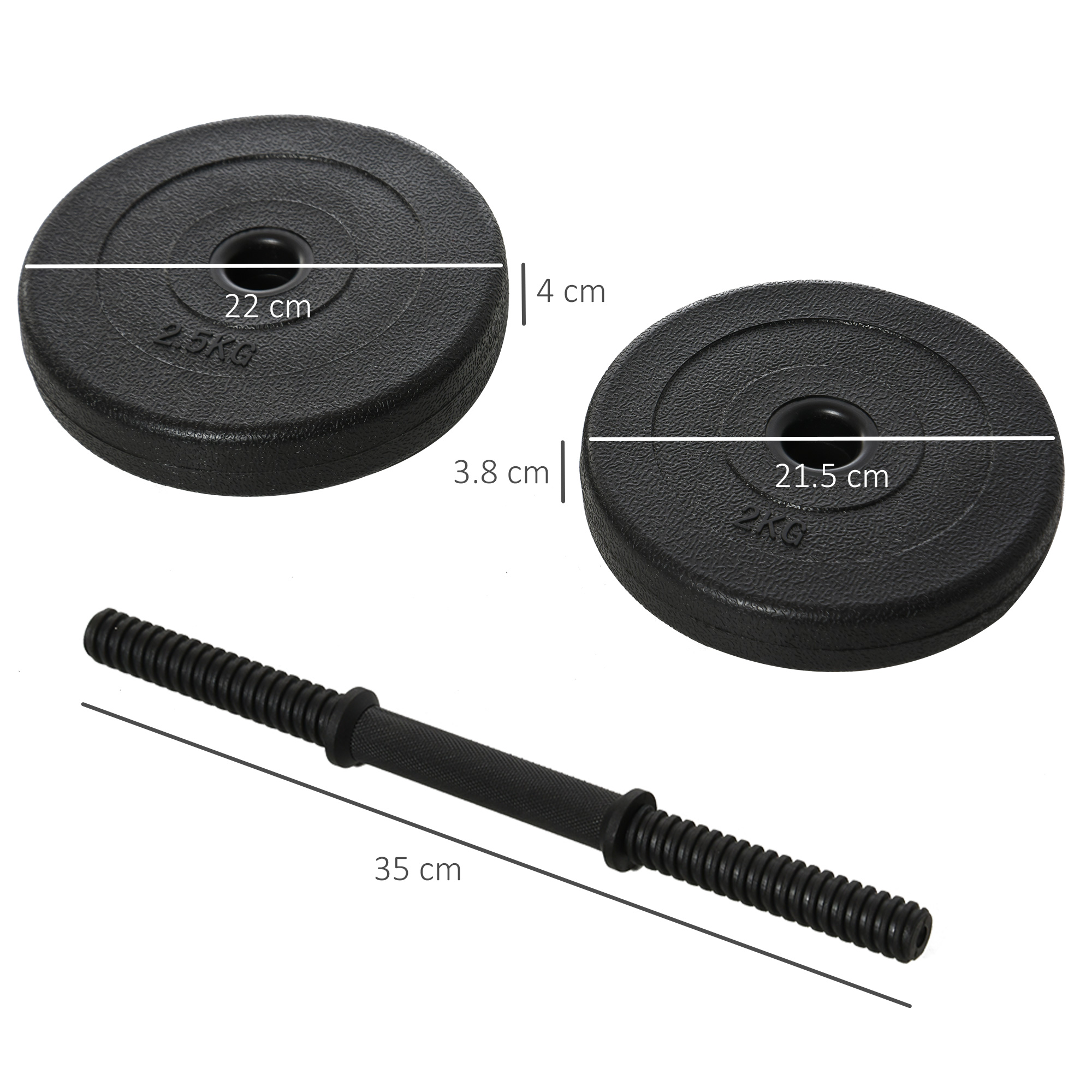 - Componență: disc de 2,5Kg (Φ22 × 4 cm), disc de 2Kg (Φ21,5 × 3,8 cm). Greutatea totală a discurilor este de 18Kg, iar cu ganterele ajunge la 20Kg. Recomandăm utilizarea pe un covor de fitness pentru a prelungi durata de viață a produsului.