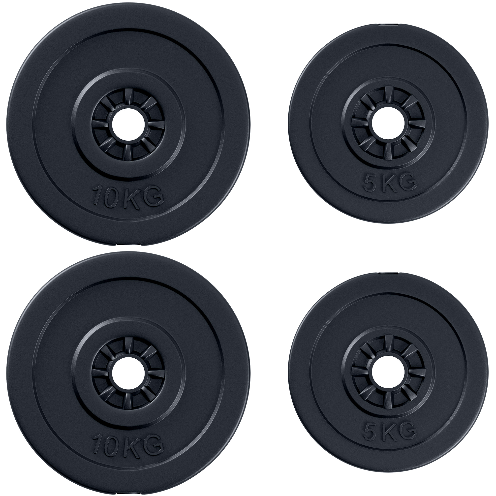 - DIMENSIUNI: Diametrul interior al găurii este de 25 mm, iar greutatea totală a setului este de 30 kg. Notă: Ganterele și halterele nu sunt incluse.