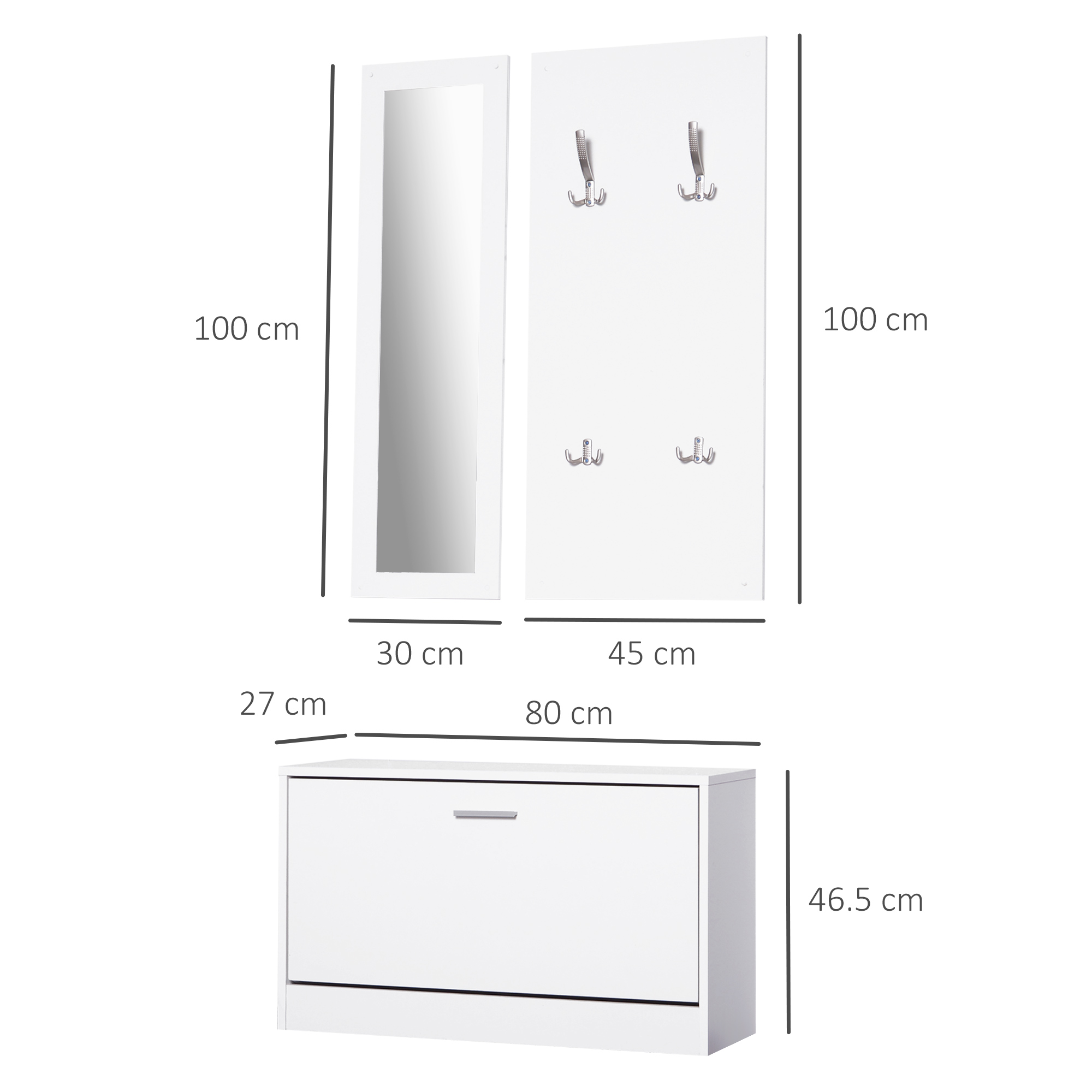 - SET COMPLET PENTRU HOL: Include un suport pentru pantofi cu bancă, un cuier cu cârlige și o oglindă verticală, oferind soluția ideală pentru organizarea încălțărilor și hainelor, cu un aspect estetic plăcut.